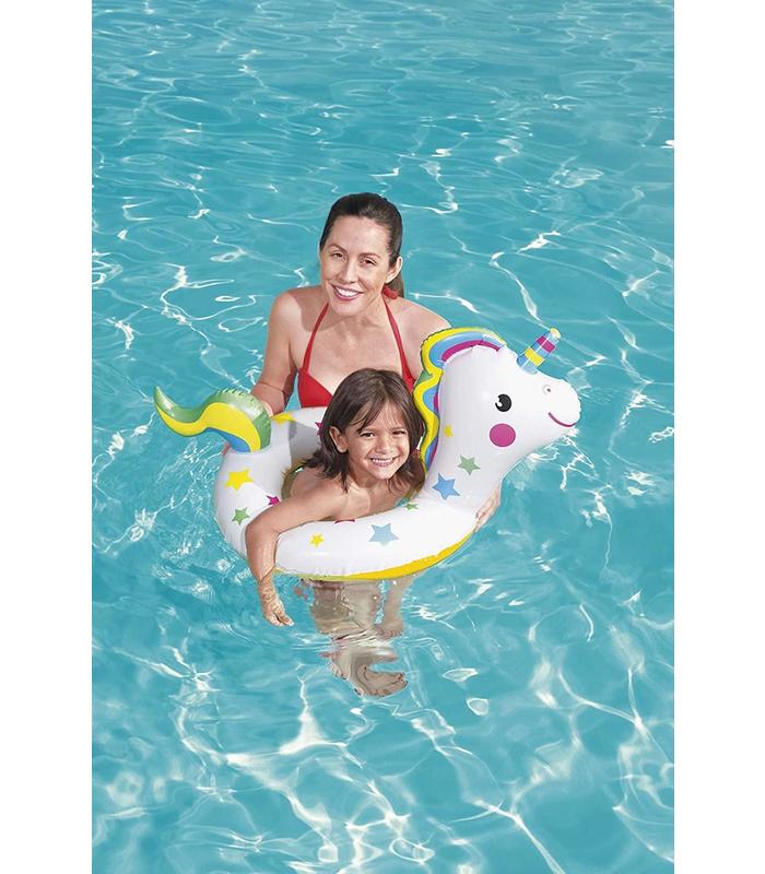 Estos flotadores con formas de animales hacen que los peques se diviertan en el agua protegiendo su seguridad. Cada flotador está hecho de vinilo resistente y tiene un tamaño indicado para los peques. La válvula de seguridad garantiza que no se escape el aire mientras juegan sin parar. Escoge el animal que más te guste. Están disponibles en 3 diseños y colores distintos: el unicornio blanco, la ballena azul o el loro rojo.