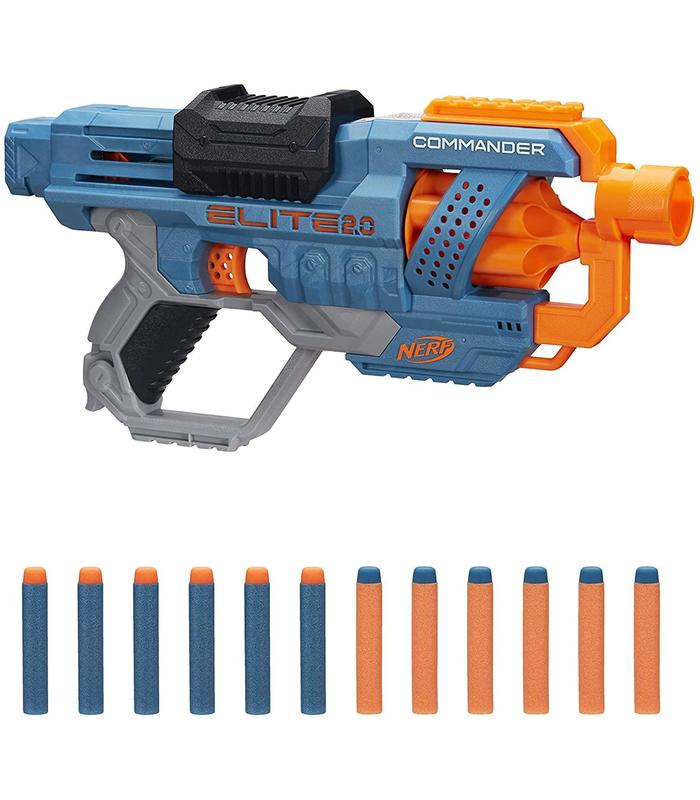 Equípate para la batalla con los lanzadores Elite 2.0 de Nerf, dotados de funciones de personalización que puedes actualizar y con las que puedes ganar ventaja en las competiciones de Nerf. ¡Acumula reservas de lanzadores Elite 2.0 de Nerf para optimizar tu estrategia de juego y emplear un rendimiento y una flexibilidad tácticos en todas tus misiones y batallas! El lanzador Elite 2.0 Commander RD-6 de Nerf cuenta con 3 raíles tácticos, punto de unión del cañón y punto de acople de la culata para personalizar el lanzador en cada juego de Nerf. Lanzador con tambor rotatorio de 6 dardos para lanzar varios dardos antes de la recarga. Arroja 1 dardo cada vez o 6 rápidamente con la acción de descarga a ráfaga. Extensión del cañón y culata no incluidos. Incluye 12 dardos oficiales de Nerf, suficientes para cargar el tambor del todo y 6 para tener a mano para la recarga. Lanza dardos hasta una distancia de 27 m. Se recomienda el uso de gafas de protección (no incluidas). No se necesitan pilas.