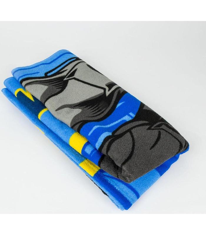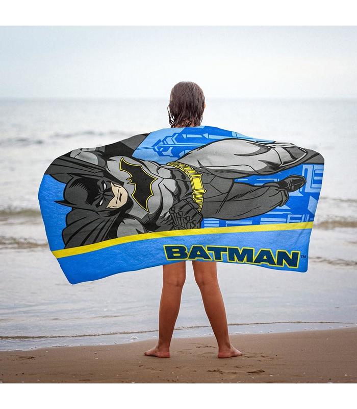 TOALLA DE BATMAN: Elaborada con poliéster, esta toalla azul y amarilla cuenta con un precioso estampado del habilidoso y fuerte Batman. Es ideal para acompañar a tu peque en la playa o en la piscina. ¡A disfrutar!