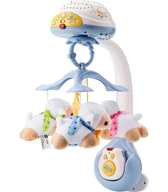 Tres tiernas ovejita de peluche giran suavemente al ritmo de las 40 melodías, 4 nanas y numerosos sonidos de la naturaleza para reconfortar al bebé
