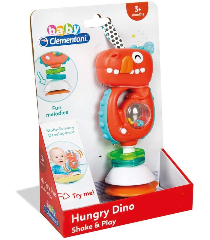 Divertido sonajero con forma de dinosaurio para entretener al niño a la hora de comer