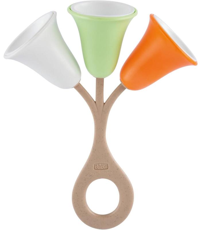 SONAJERO TULIPÁN: Diseñado para entretener a los más pequeños con el dulce tintineo de los cascabeles de colores; fabricado en Italia con plástico reciclado y bioplástico