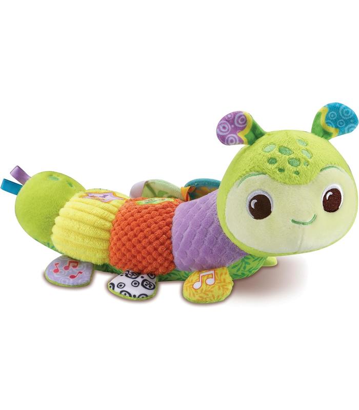 ¡DESCUBRIMIENTOS SENSACION-ALES! Despierta tus sentidos con la variedad de texturas y colores de esta suave y adorable oruguita. Pulsa los botones luminosos para aprender nuevas palabras y canciones, explorar texturas y mírate en el espejito de descubrimientos.