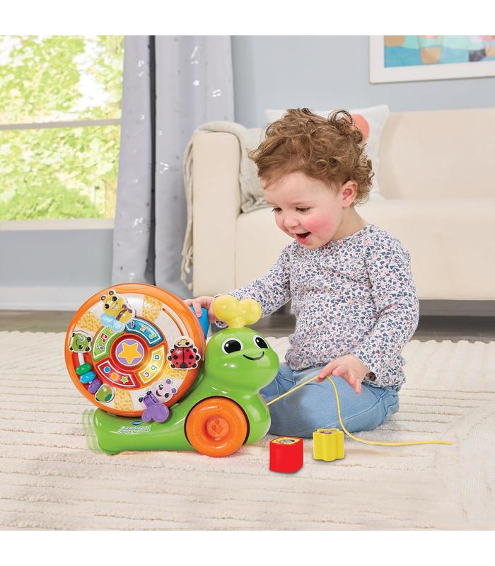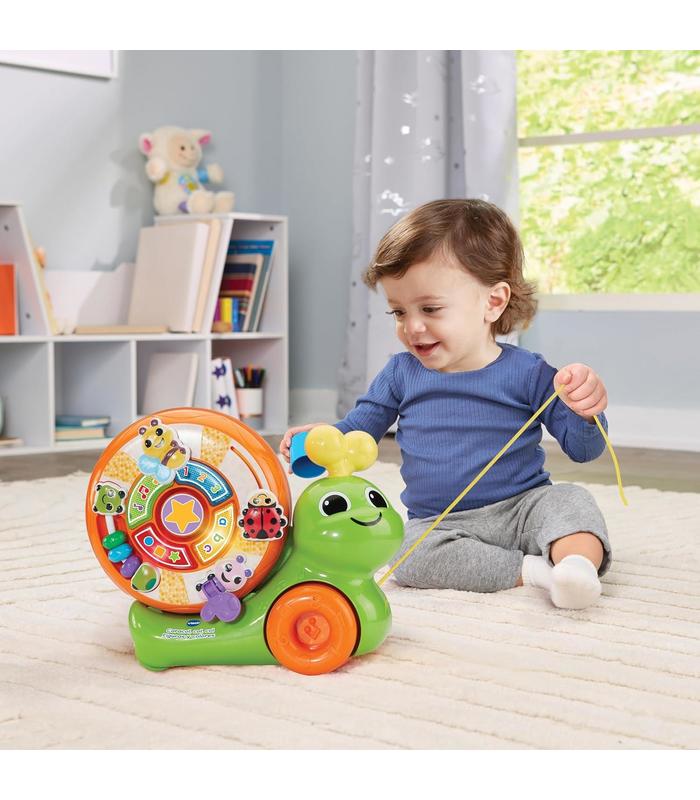 DISEÑO INTERACTIVO – El caparazón gira mientras el caracol se mueve, activando alegres canciones, melodías y efectos luminosos para captar la atención de los más pequeños.