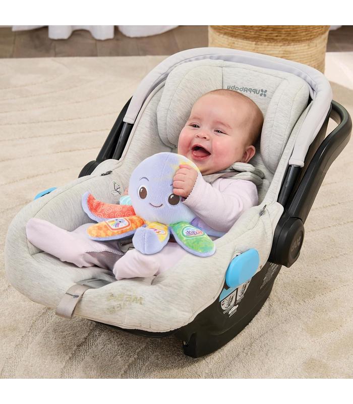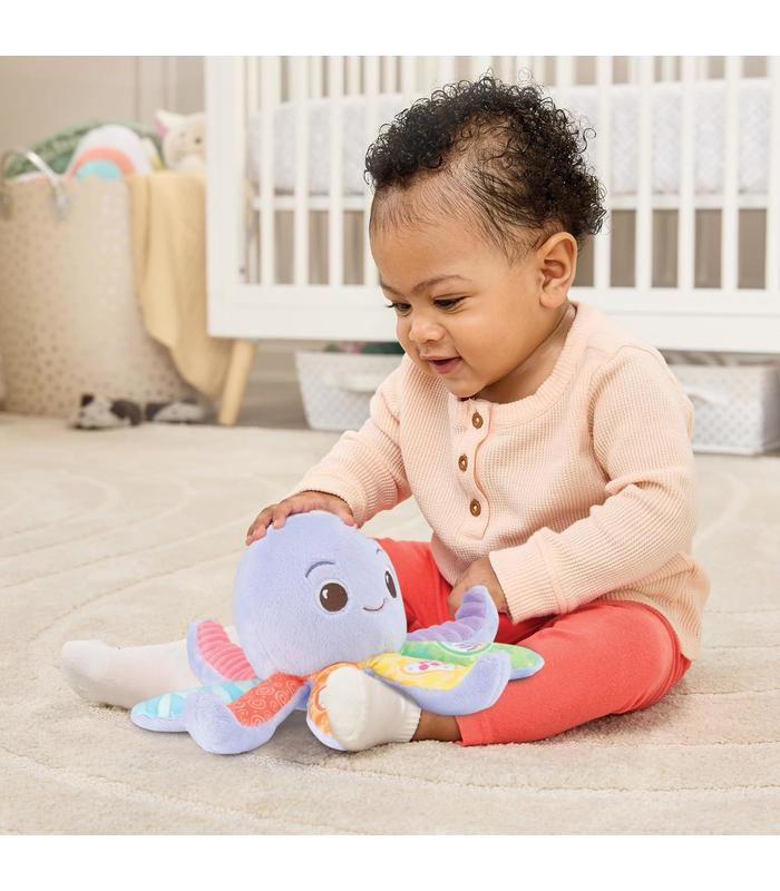 BOTONES INTERACTIVOS: Cuenta con tres botones en sus tentáculos que activan frases, melodías y relajantes sonidos de la naturaleza, incentivando el desarrollo cognitivo.
