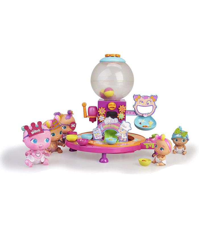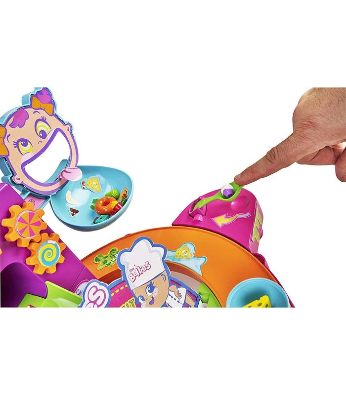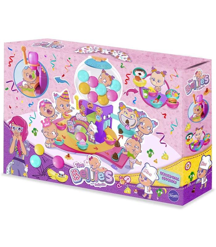 Bellies''ball Appetite es el nuevo playset de los Bellies y los Mini Bellies con el que pondrá darles de comer de manera divertida. ¿Cómo funciona? Gira la rueda y deja que una bolita con comida caiga por el tobogán, los niños tendrán que abrirla y descubrir qué comida van a comer los Bellies y ponerla en la cinta transportadora de comida. ¡Puede ser una comida divertida o asquerosa como el batido de pipí o el queso podrido! ¡Hay diez diferentes! Cuando los Bellies no quieran comer más, podrán jugar con ella en la diana para dar de comer al payaso. Una vez que acaben, podrán guardar todas las comidas en sus respectivas bolas y volver a meterlas para poder jugar tantas veces como quieran. No viene incluido muñeco.
