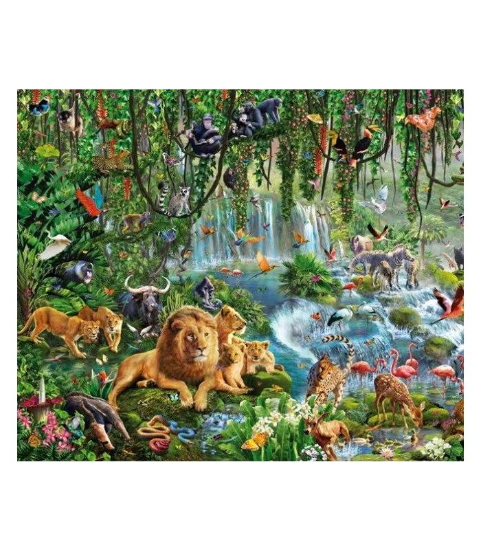 Este puzzle ilustrado por Adrian Chesterman es un verdadero desafío para los puzzle apasionados con un gran nivel de detalle y color que transporta a la naturaleza exuberante de África; Leones, elefantes, jirafas y todo tipo de animales habitan una frondosa selva que se podrá construir pieza a pieza