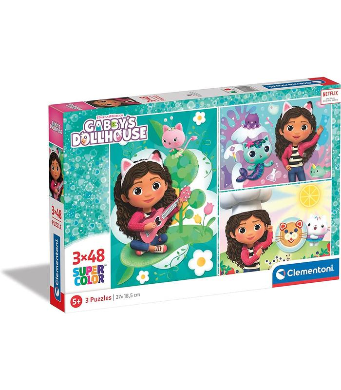 Set de 3 Puzzles de 48 piezas cada uno con imágenes de La Casa de Gabby
