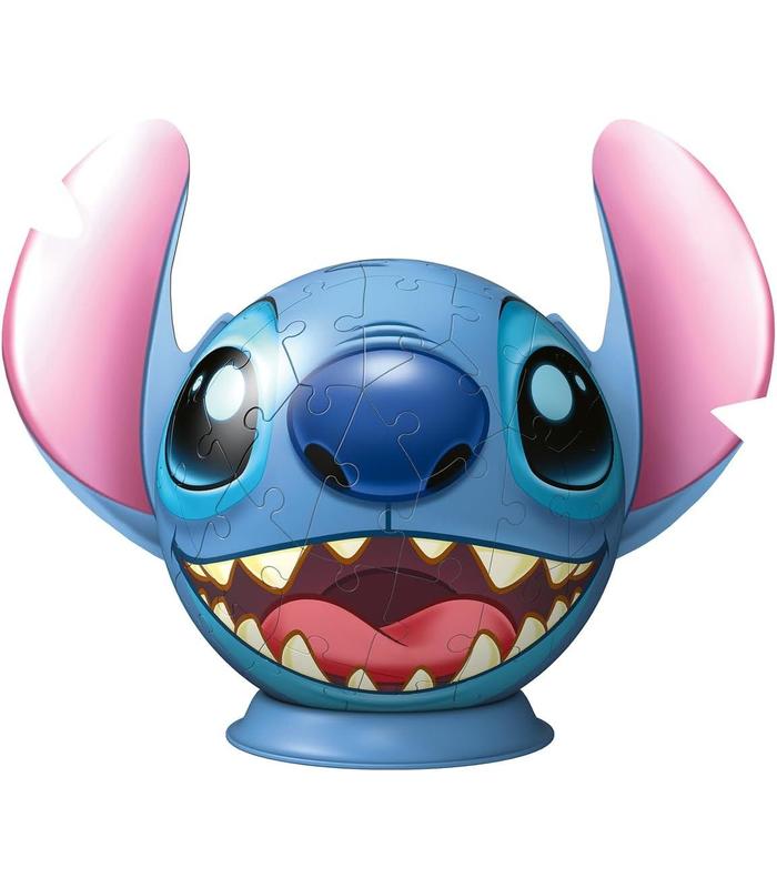 El producto incluye el Puzzle-Ball de 72 piezas con las simpáticas orejas de Stitch y un soporte para exponer el puzle una vez completado.