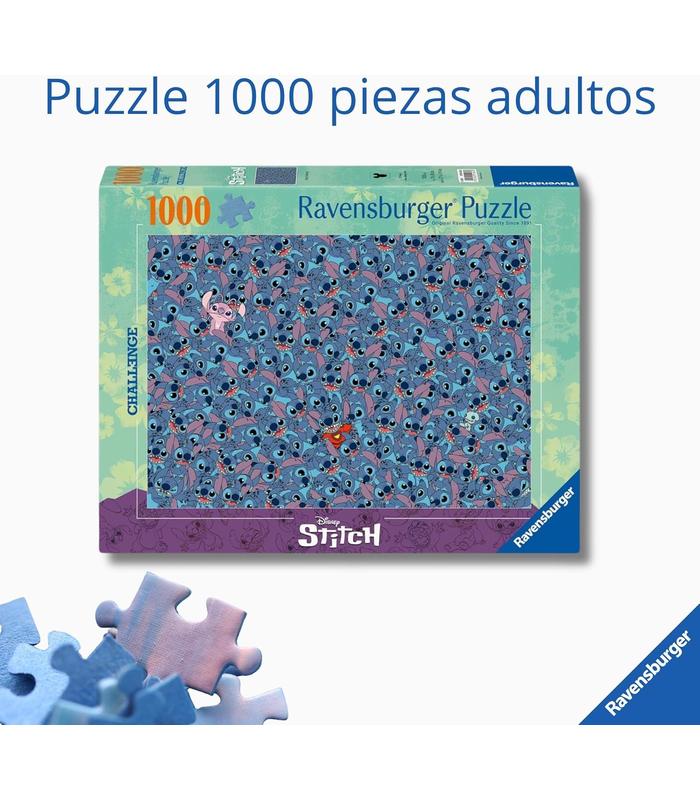 PUZZLE STITCH: Este es un puzzle 1000 piezas de la pelicula Lilo y Stitch, perfecto para fans de Disney que disfrutan de los desafíos; una imagen colorida y entrañable de los personajes, ideal para pasar horas de entretenimiento y decorar una vez terminado.