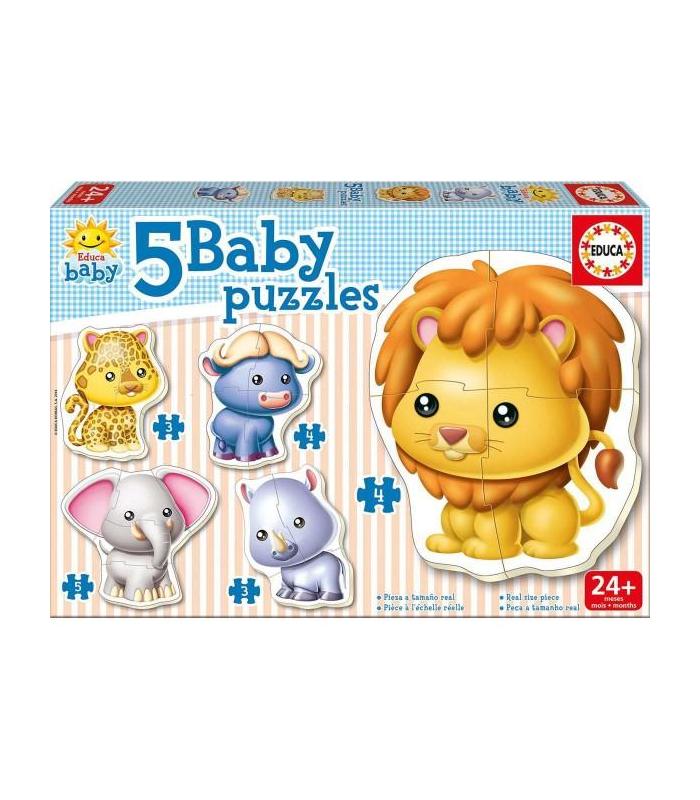 Puzzle EDUCA Baby 3-5 Piezas, Animales Salvajes. Los puzzles para los más pequeños de la casa.