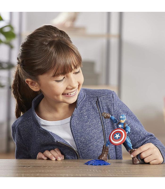 Esta figura articulada proporciona un montón de diversión. La figura del Capitán América de 15 cm tiene brazos y piernas flexibles que se pueden colocar en muchas posturas diferentes