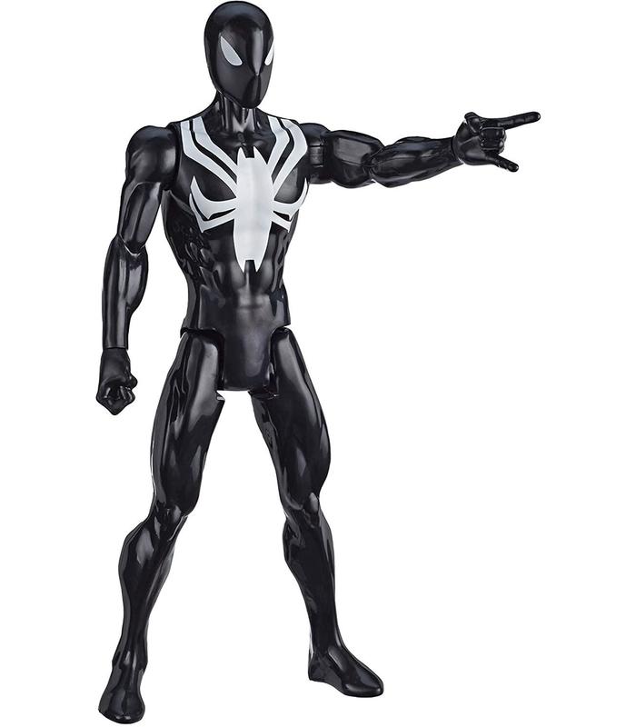 - Disfraz de Spider-Man de 30 cm, color negro, con figura de Spider-Man que encuentre el caos, la acción está de moda. Recrea las aventuras con la figura de Spider-Man de 30 cm inspirada en los cómics de Marvel