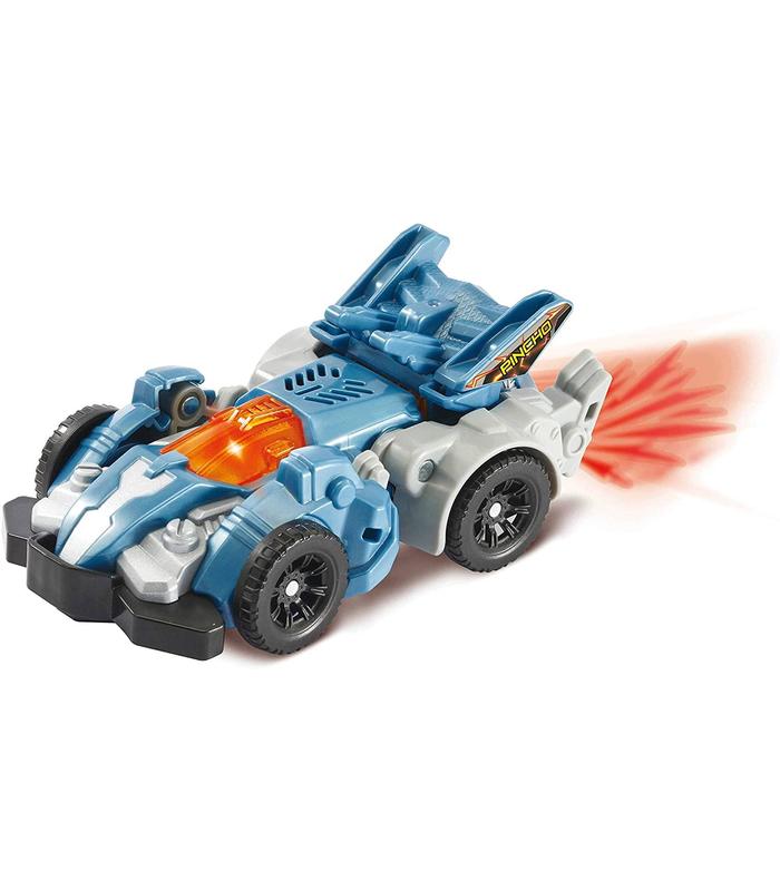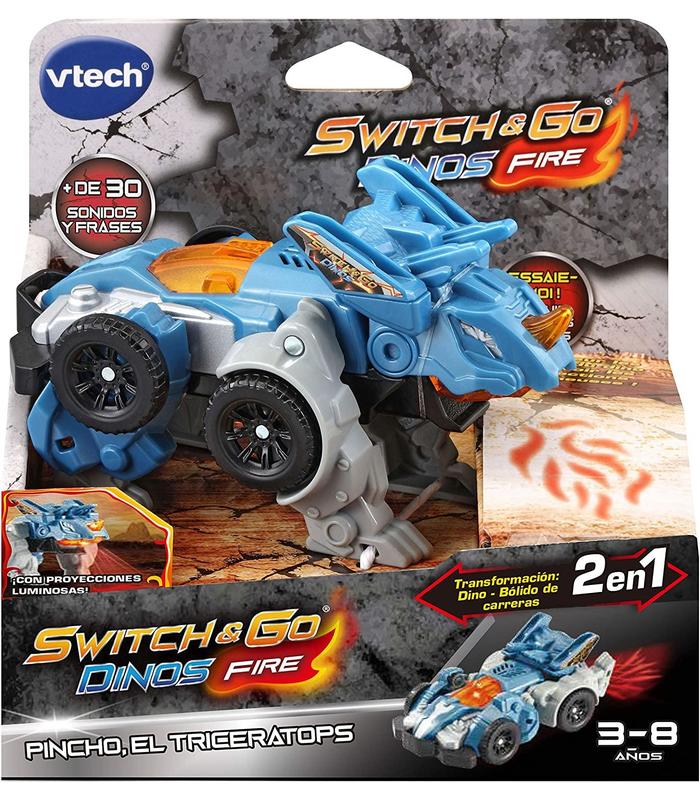 Feroz dinosaurio con voz, transformable en vehículo. El juguete identifica si se encuentra en modo animal o vehículo para responder en consonacia.