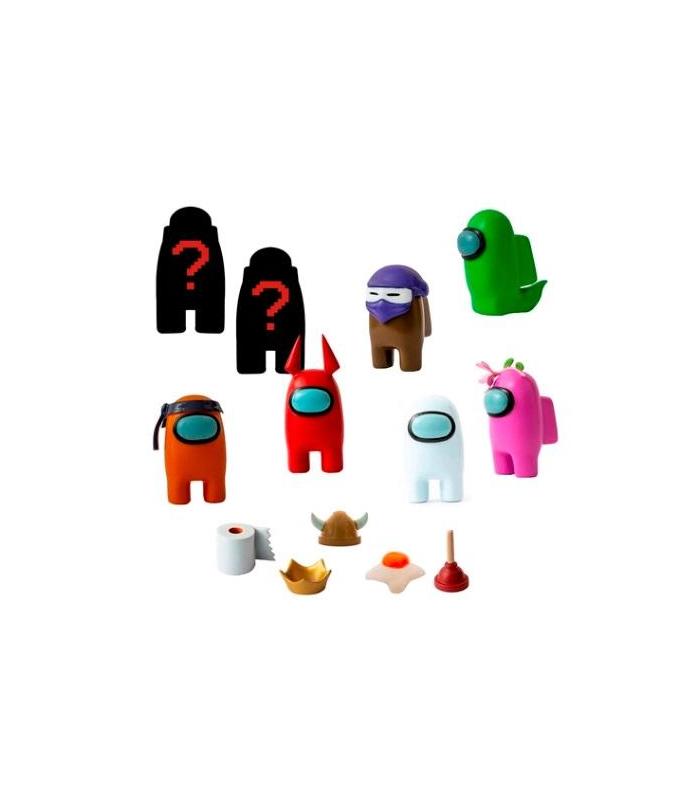 ¡Fantástico pack de 8 graciosos personajes del juego más descargado de 2020 AMONG US! Incluye 8 figuras; figura amarilla, roja, verde, azul, etc… y una ¡sorpresa! Cada figura lleva un divertido disfraz y ¡además el pack viene con 5 accesorios extras! Edad recomendada: +3 años.
