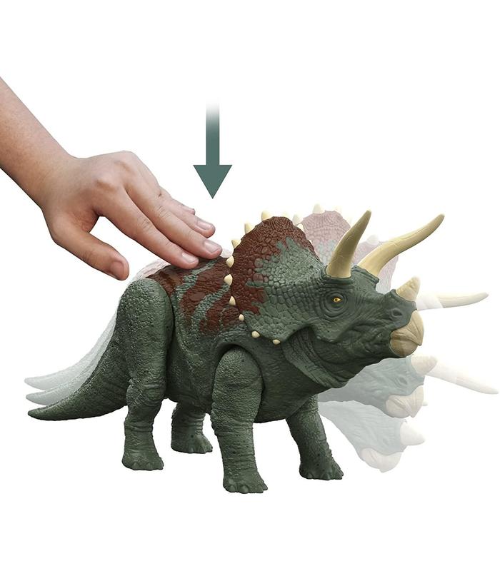 Jurassic World: Dominion trae nuevas y emociones aventuras para los amantes de los dinosaurios. Con unos 33 cm de largo, esta figura de Triceratops Roar Strikers inspirada en la película lleva la diversión con dinosaurios a su máxima expresión.