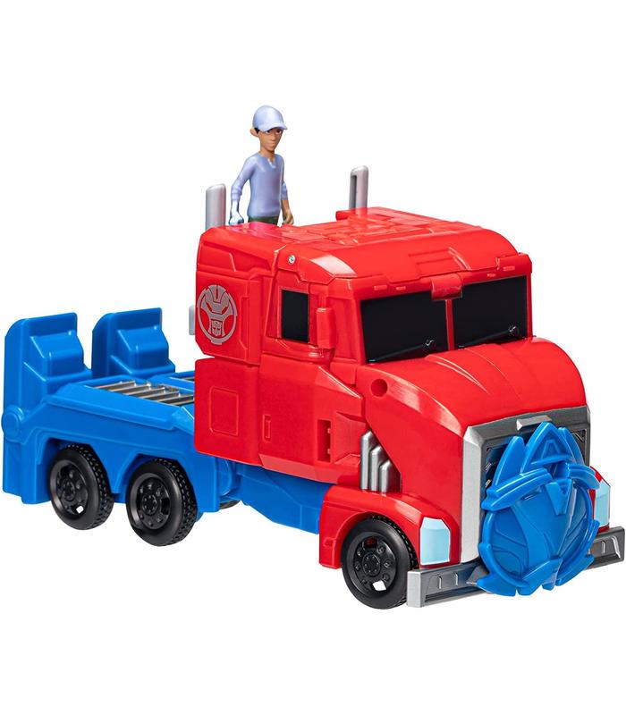 FIGURA 2 EN 1 CON CONVERSIÓN DE GIRO: Comienza la conversión de Optimus Prime a robot en 3 pasos manuales. ¡Después, conecta la figura humana de Robby Malto al hombro del robot para activar el resto de la conversión con un emocionante giro! Conviértelo nuevamente a modo camión en 12 pasos de forma manual.