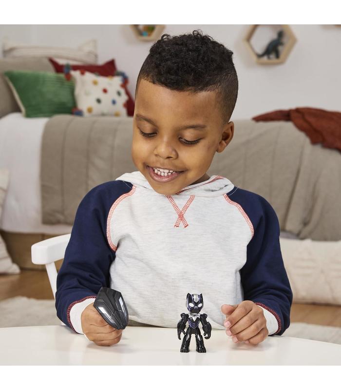 JUGUETE MARVEL ARTICULADO DE 7,6 CM: Esta figura de acción de Black Panther, de Iron Man and his Awesome Friends, mide 7,6 cm e incluye 5 puntos de articulación para que los niños y las niñas a partir de 3 años puedan exhibirla en diferentes poses
