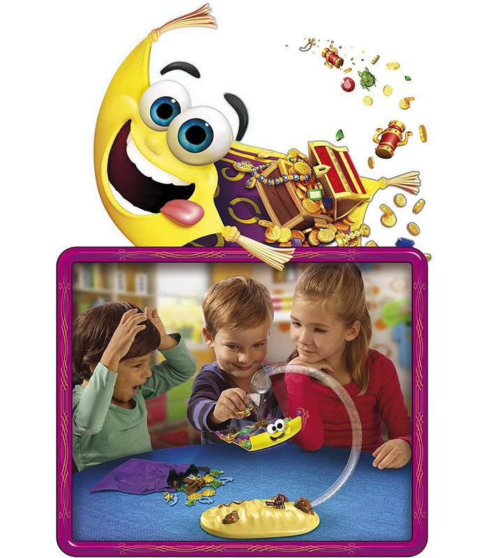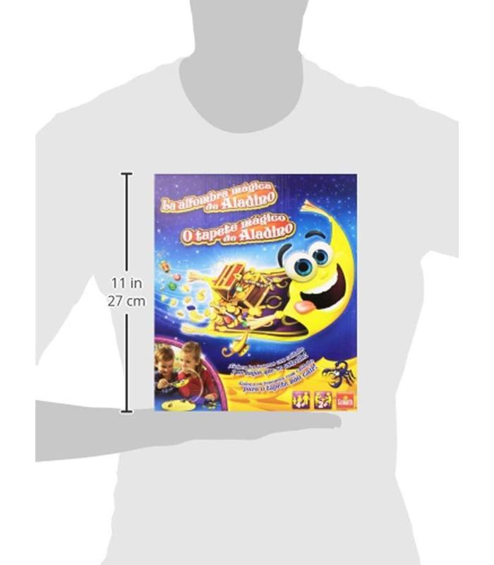 La Alfombra Mágica de Aladino, un divertido juego de destreza. La alfombra mágica de Aladino te ayudará a llevar volando los tesoros de la bolsa. Esta es una alfombra mágica que flota en el aire. Tienes una bolsa con un montón de tesoros. Empezando por el jugador más joven, se saca un tesoro de la bolsa y se coloca sobre la alfombra. Los primeros son más fáciles pero a medida que se va llenando la alfombra, cada vez habrá menos huecos donde ponerlos y cada vez pesará más, así que hay que ir con mucho cuidado. El primer jugador que, al colocar un tesoro, haga que la alfombra caiga, pierde la ronda. Si al intentar colocar un tesoro se tira otro de la alfombra, se debe volver a colocarlo y colocar uno más de penalización. Se tiene que mantener el pulso firme, para no perder los tesoros ¡que divertido! ¡Nunca has visto una alfombra como esta! Para 2 o más jugadores. Edad recomendada: +4 años.