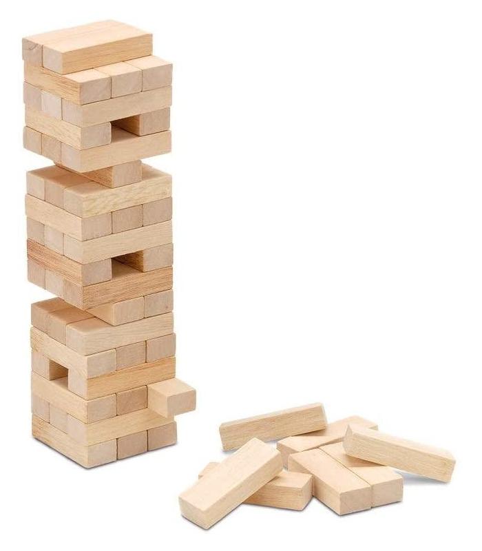CÓMO JUGAR - Juego de la torre fabricado íntegramente en madera. Coge bloques que sean innecesarios para la estabilidad de la torre y colócalos arriba para hacerla lo más alta que puedas, pero ojo, porque si se te cae pierdes. Presentado en caja de cartón reciclable de diseño actual.