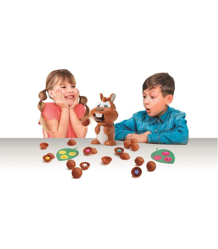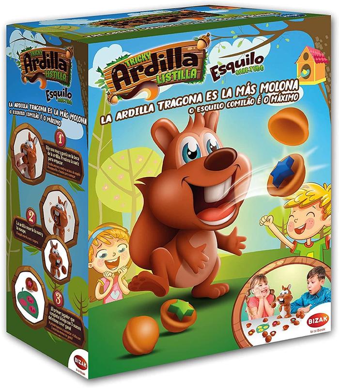 Tricky ardilla listilla es un emocionante juego de acción para toda la familia. Elige una nuez y colócala en la boca de la ardilla. La ardilla la muerde y la escupe. Si el fruto de la nuez es del color de tu hoja te la quedas y si no, tienes que cerrar la nuez y volver a dejarla junto al resto de las nueces alrededor de la ardilla. Intenta recordar el color del fruto del interior de la nuez. El primer jugador que consiga completar la hoja con 3 frutos del mismo color que su hoja gana.