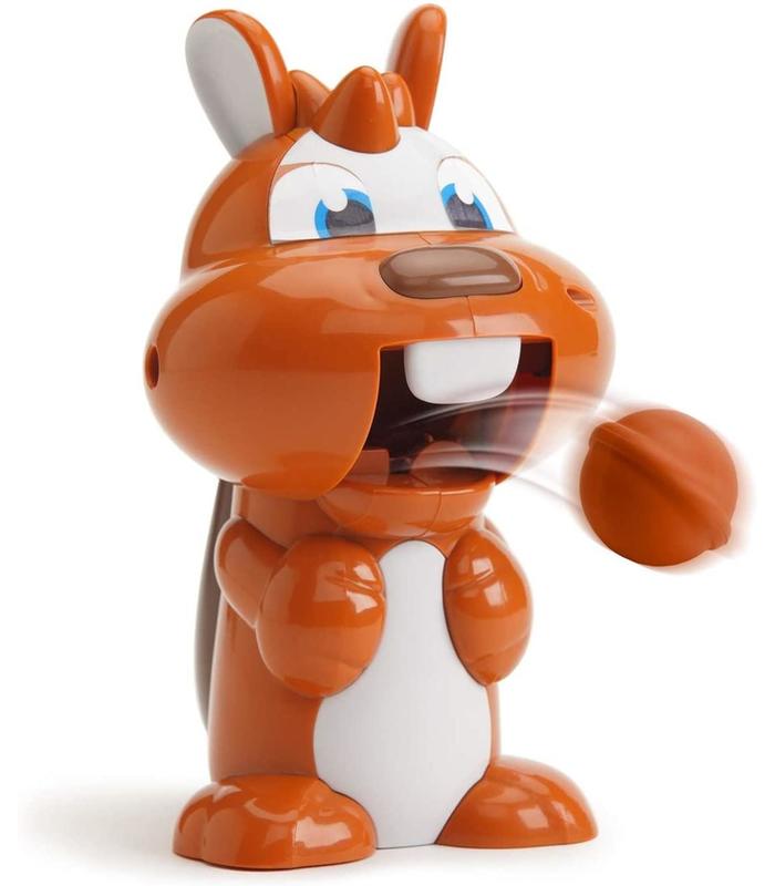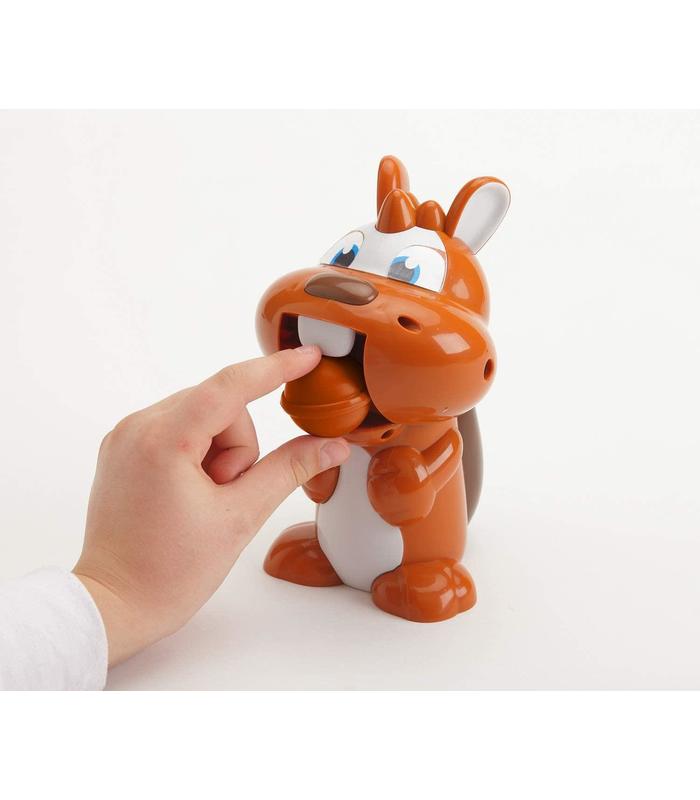 Elige una nuez y colócala en la boca de la ardilla; la ardilla la muerde y la escupe
