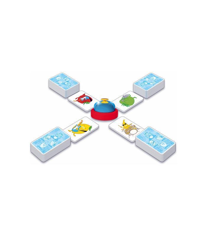 Las frutas de Halli Galli han cogido sus instrumentos y ¡han montado una party! Por turnos, los jugadores van sacando cartas y, en cuanto haya dos cartas que coinciden en dos características, tienen que intentar ser los primeros en tocar el timbre. Y atención a la ciruela cantante, ¡siempre hay que tocar el timbre cuando sale!