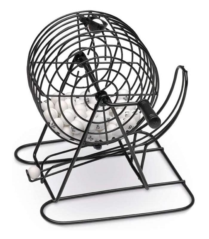 COMPONENTES: Bombo de metal, 90 bola, plataforma con 90 huecos, 48 cartones, fichas para marcar los cartones. EDAD: +8 años NIVEL: primaria y secundaria