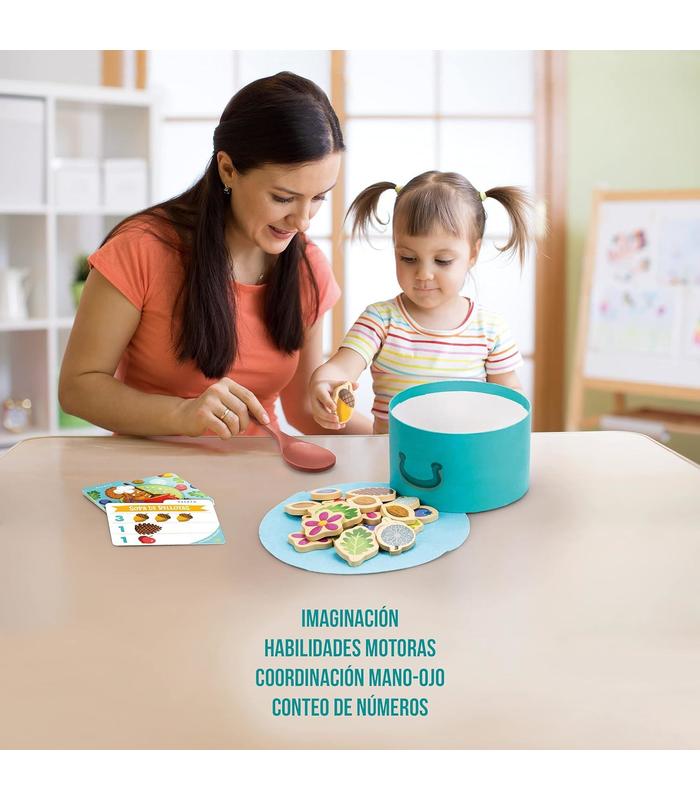 ¡A la ardilla le encanta la sopa – la sopa de bellotas! ¿Puedes ayudar a la ardilla a preparar sus sabrosas sopas? Consulta los ingredientes necesarios en la receta y añádelos uno a uno en la olla contándolos mientras cocinas. ¡Remueve y disfruta! Para 1 jugador de 2 a 4 años.