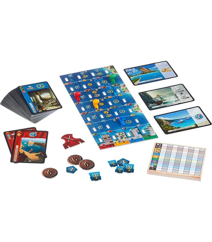 8 tableros Astillero, 32 Barcos, 24 cartas de Armada, 27cartas de Isla, 48 marcadores de Conflicto Naval, 6 marcadores de Conflicto Terrestres, 2 marcadores de Incursión, 6 monedas de valor 6, 4 cartas de ayuda y 1 reglamento.