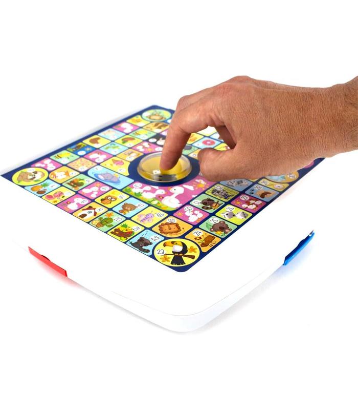 Parchis/oca Automático 2 juegos clásicos en un solo producto. Óptima superficie de juego en formato de viaje. Al pulsar la caja del dado, este se mueve automáticamente. Con tapa para guardar tus fichas en un lugar seguro. Recomendado a partir de 3 años.