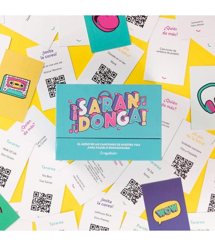 Sarandonga ocupa poco espacio y sus cartas laminadas de calidad hacen que se pueda jugar de fiesta, de viaje o de tranquis con familia o amigos. Además es muy fácil de jugar: un dado, seis categorías, dos equipos con ganas de disfrutar y un solo equipo ganador. Estas son sus seis categorías: