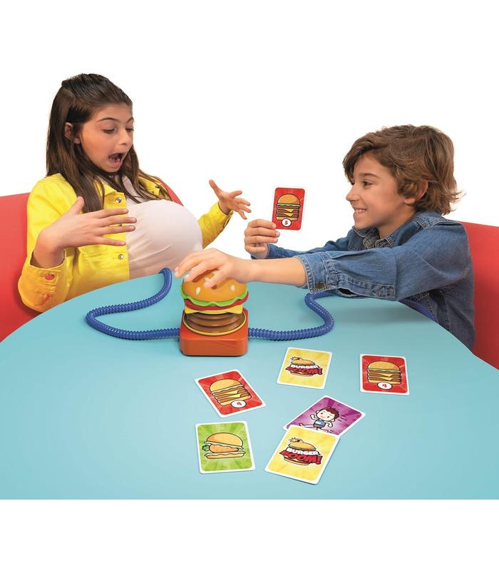 Coge cartas y trata de pulsar la burger tantas veces como te lo indiquen para inflar la barriga de tu contrincante y … ¡hacerla explotar!