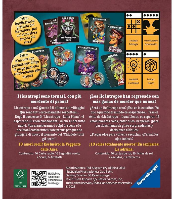 ¿Sois unos maestros del engaño? ¿Nadie os da gato por liebre? ¡Entonces este es vuestro juego! ¿Quién de vosotros será un licántropo traicionero y quién un inocente aldeano? ¡Solo tenéis una oportunidad para descubrirlo!