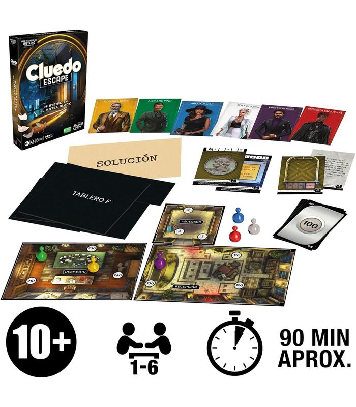 UN JUEGO DE ESCAPE Y SOLUCIÓN DE MISTERIOS: ¿Qué ocurre tras el asesinato de Boddy? La historia continúa en el juego Cluedo Escape: Misterio en el Hotel Black, trayendo la intriga del clásico Cluedo en un juego de mesa estilo escape de la habitación