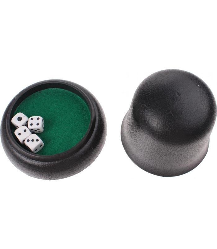 Juego de dados con copa. Se puede utilizar para varios juegos de dados. Por ejemplo, un juego donde el objetivo es conseguir la mejor combinación con 5 dados. Divertido y práctico para llevarlo de vacaciones, de viaje o para jugar en un día lluvioso. Este set consta de una taza y 5 dados. Apto para niños mayores de 6 años. Tamaño: largo 6 x ancho 12,5 x alto 21 cm.