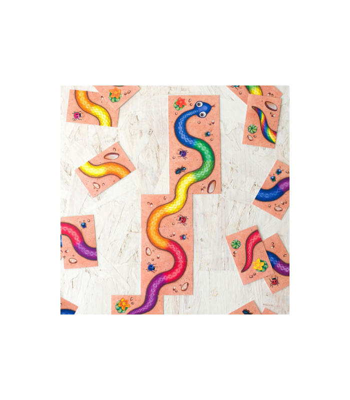 Los colores de la serpiente están desordenados! ¿Quién puede ayudar a ponerlos en orden? Rojo con rojo, azul con azul, amarillo con amarillo... ¡Es fácil! ¿verdad? Completad las serpientes con cabeza, cuerpo y cola y llevároslas a vuestro montón. ¡El que consiga más cartas al final de la partida es el ganador!