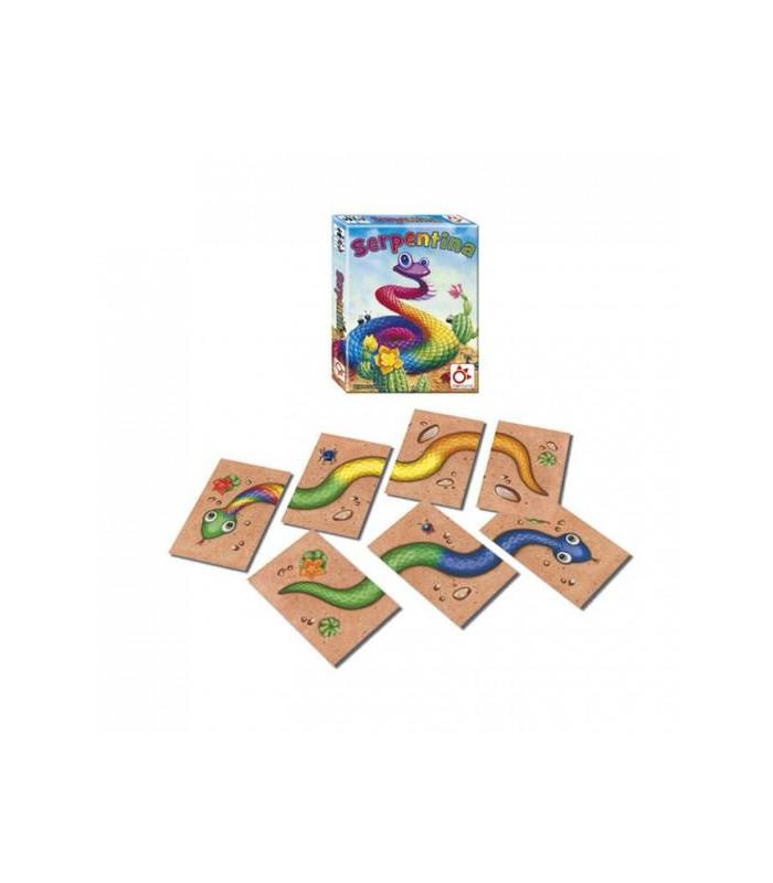 En Serpentina todos tienen que intentar formar serpientes, lo más largas posibles. Una serpiente siempre consta de tres partes: cabeza, cuerpo y cola. Quien consiga más cartas gana el juego.