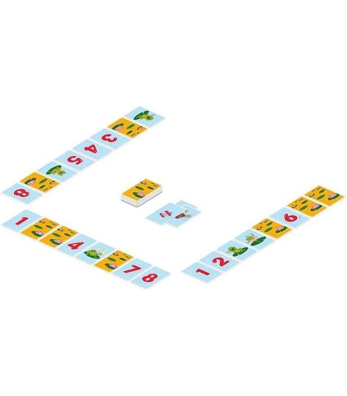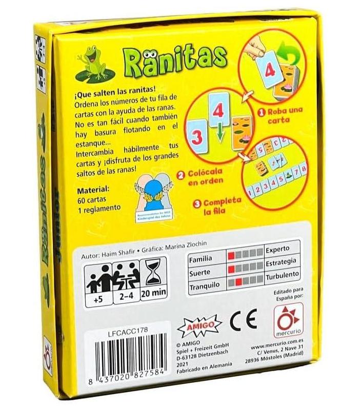Intercambia las cartas de tu fila boca abajo por las del montón boca arriba, colocando los números en orden ascendente. Las ranitas te ayudarán a poner orden más rápido, ¡pero cuidado con la basura que ha caído al estanque!