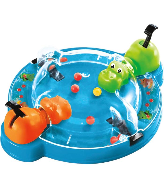 HIPOPÓTAMOS TRAGABOLAS: Al igual que en el juego de tamaño normal, los jugadores intentan ser los primeros en conseguir que su hipopótamo se coma todas las bolitas para ganar Incluye 2 hipopótamos; el juego de tamaño normal (se vende por separado) tiene 4 hipopótamos