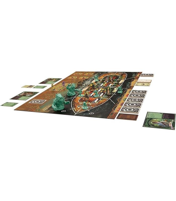 Guía de aprendizaje, Referencia de reglas, Tablero con 4 medidores de recursos, 22 figuras de monstruo de plástico, 10 hojas de personaje, 3 hojas de referencia de traidor, 6 hojas de referencia de jugador, 10 figuras de personaje de cartón, 1 ficha de Jugador activo, 4 marcadores de Traidor, fichas de Pasajero, 1 dado de 8 caras, 1 ficha de Viaje, 1 ficha de Ritual, 14 cartas de Lealtad, 70 cartas de Mitos, 2 cartas de Rol, 20 cartas de Hechizo, 20 cartas de Escala, 20 cartas de Objeto, 9 cartas de Daño del barco, 10 cartas de Proeza, 126 cartas de Habilidad