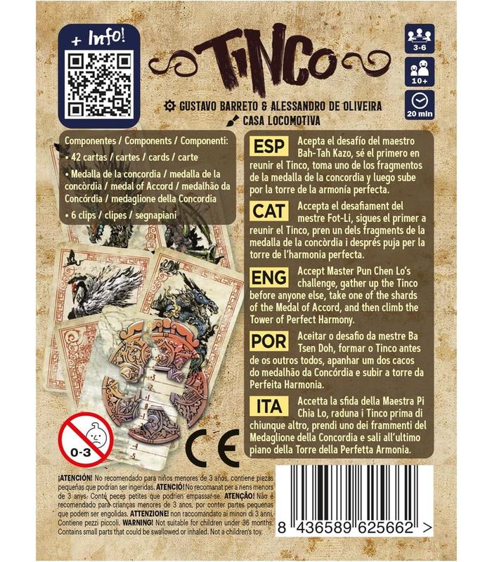Tinco es un juego de cartas en el que como aprendiz de Kung-fu tendrás que demostrar al maestro Pun Chen todo lo que has aprendido. La prueba final consiste en un enfrentamiento épico contra temibles formas animales: mantis luchadoras, dragones celestiales, tigres feroces…