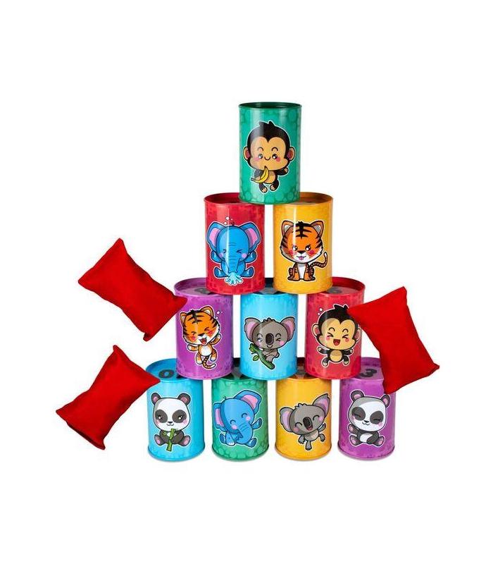 El clásico juego de derribar latas llega con un toque especial: ¡ilustraciones de adorables animales y sacos para lanzar! Perfecto para jugar al aire libre, este juego fomenta la puntería, la coordinación y la diversión en grupo. Ideal para fiestas, reuniones familiares o simplemente para disfrutar en el jardín o el parque. ¡Afina tu puntería y derriba todas las latas para ganar!