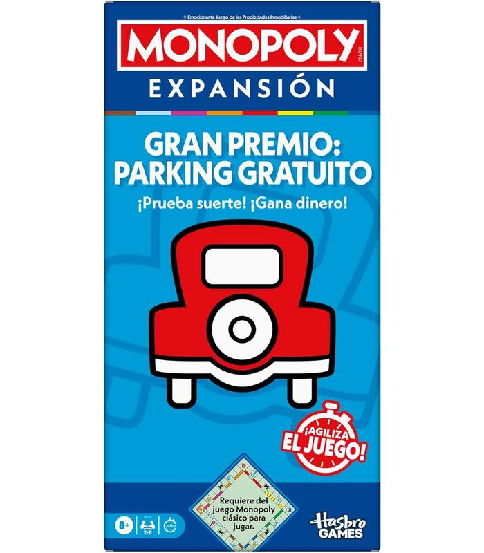 Una otra manera de jugar el clásico juego Monopoly: dale un toque dinámico al juego Monopoly y juega en menos tiempo con esta expansión: parking gratuito; esto es una expansión, no un juego completo (requiere del juego Monopoly clásico para jugar; se vende por separado)