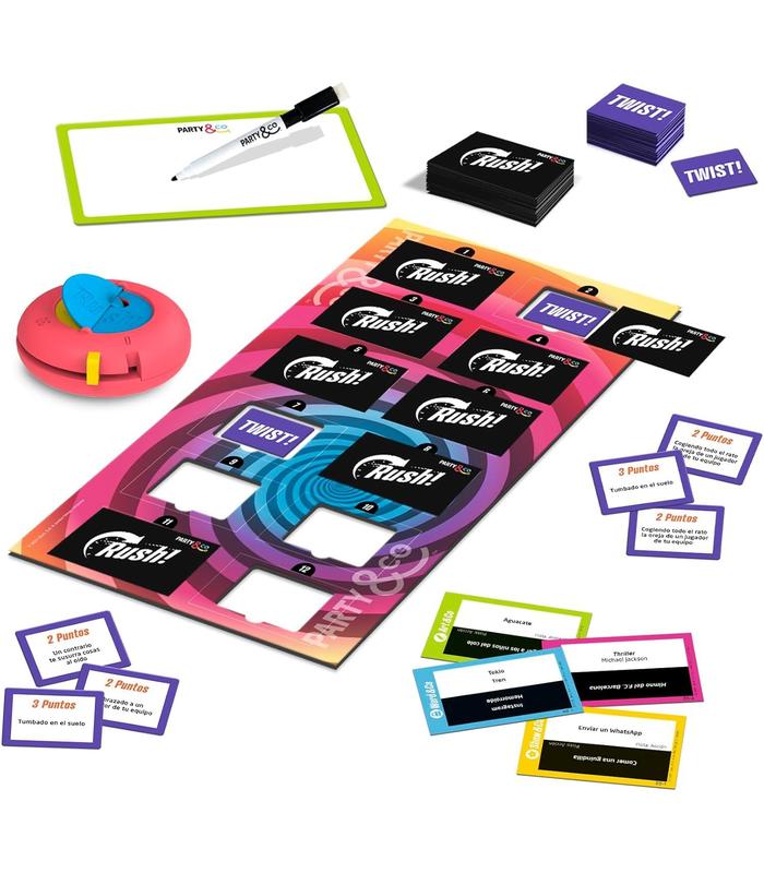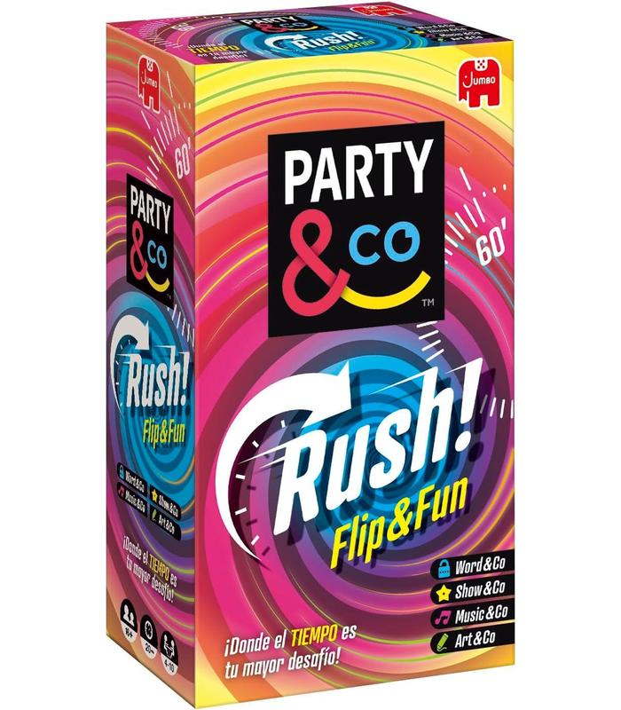Nuevo Party & Co. Rush, ¡donde el tiempo es tu mayor desafío! Esta edición más rápida y ágil transforma cada partida en una emocionante carrera contrarreloj. Con 4 categorías únicas: Word & Co., Show & Co., Art & Co., Music & Co.. Con twists inesperados que crean momentos inolvidables y risas interminables. ¡El juego más loco ha llegado!