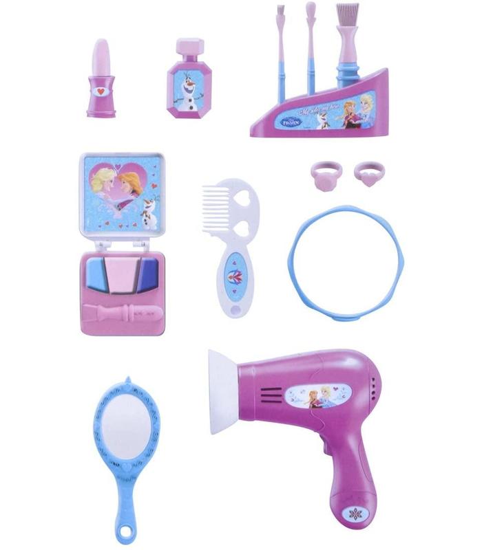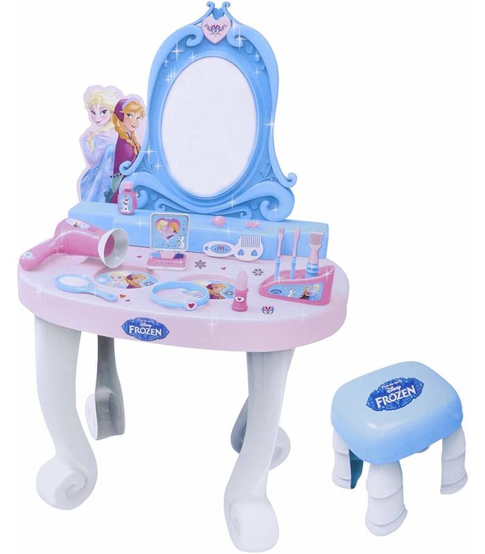 Este fantástico tocador inspirado en Frozen II es super bonito y viene con todo lujo de detalles, como el secador, peine, espejito, joyitas y accesorios para ser una bella princesa. Tiene una alltura de 78 cm e incluye el bonito taburete para completar el bonito tocador.