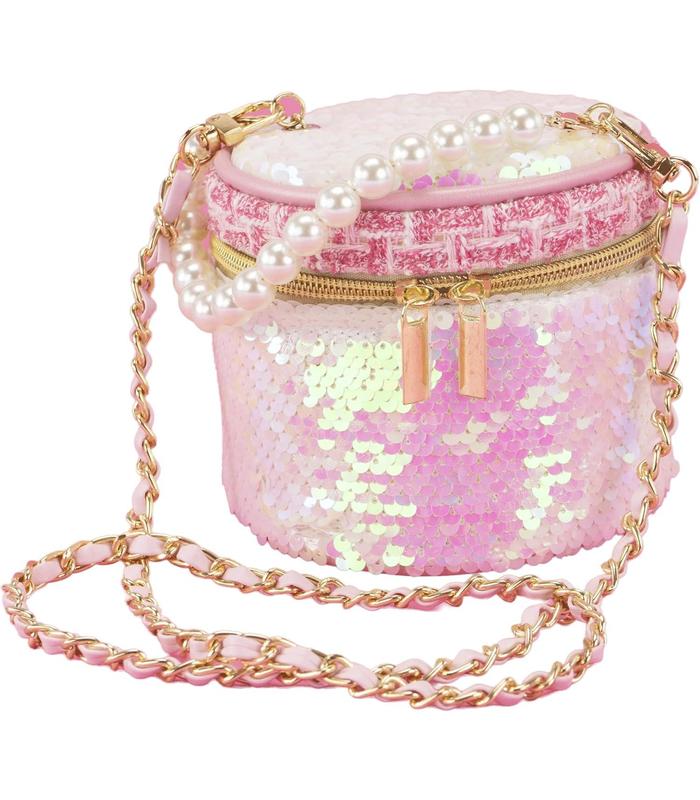 CARACTERÍSTICAS: el Girabrilla Baúl cuenta con un bolsillo principal con apertura con cremallera o clip. El forro del bolso es de tela con lentejuelas reversibles. La correa de hombro es de longitud predeterminada y ofrece la posibilidad de transportarla a mano gracias a su práctico asa de perlas en la parte superior.