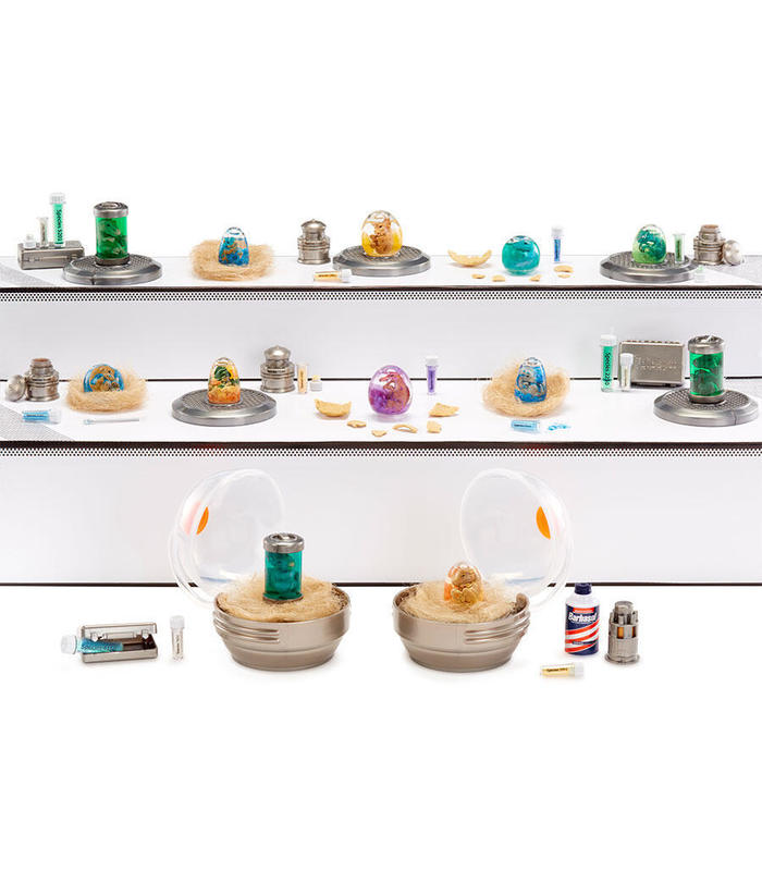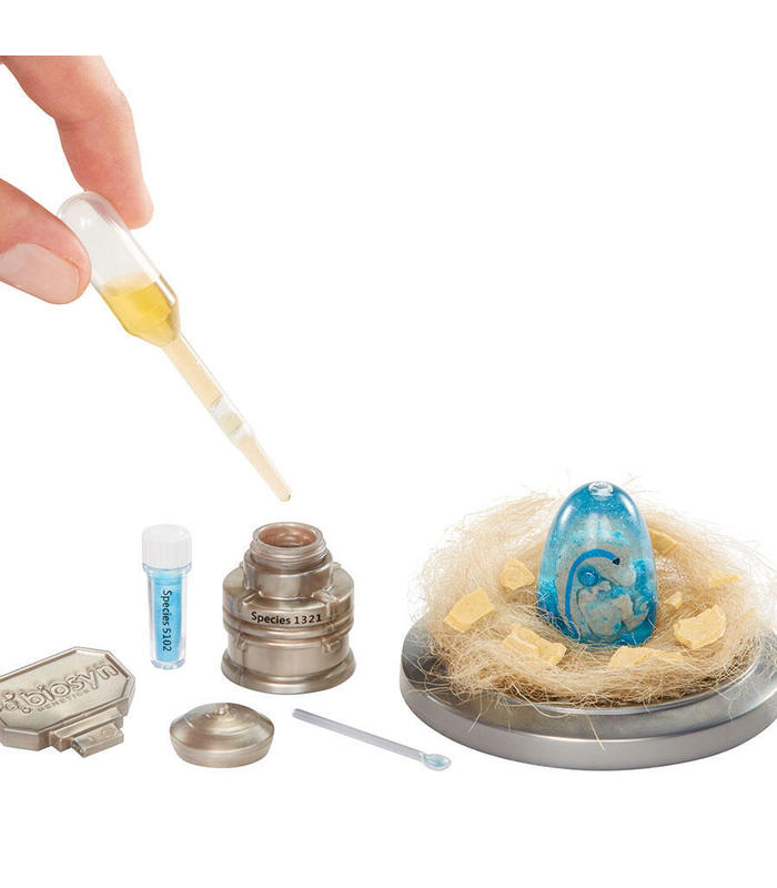 Sigue las instrucciones para inyectar ADN en polvo y líquido en tu huevo o cilindro, ¡y así dar vida a tu bebé dinosaurio! Una vez inyectado el ADN, agita el huevo o cilindro híbrido y espera a que los materiales se separen, ¡y así revelarás tu dinosaurio! Tu bola se transforma en una incubadora para tu mini dinosaurio.