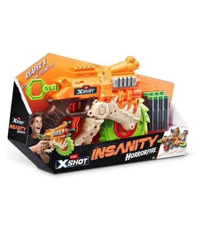 3. Capacidad de los dardos: el XSHOT Insanity HorrorFire Reaper X tiene una sola capacidad de tracción de dardos para cebar. ¡Desata los 8 dardos incluidos en tus enemigos!