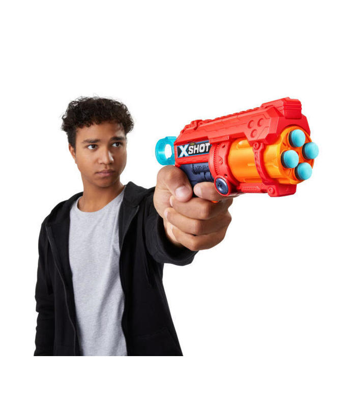 Consigue este alucinante lanzador de dardos de foam con tampor rotatorio y espacio para cuatro dardos de foam, justo lo que buscas para lanzar hasta cuatro dardos en pocos segundos. Pon a prueba tus habilidades junto a este nuevo lanzador de tu marca preferida, siente la fuerza y precisión de los lanzadores X-Shot de Zuru en cada lanzamiento.